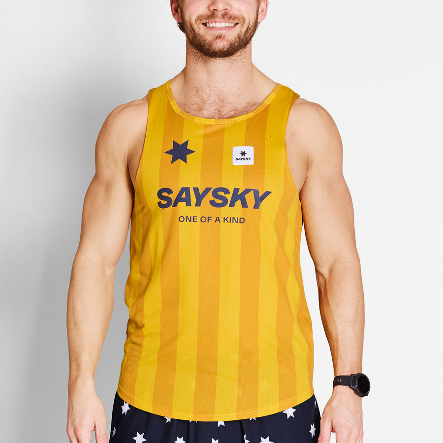 SAYSKY Stripe Combat Singlet es una camiseta de competición con rayas tonales y un audaz número 1 en la espalda, que te recuerda —a ti y a todos— ser único. La camiseta es de secado rápido y absorbe la humedad, lo que garantiza un alto rendimiento durante toda la carrera. Su confección técnica reduce la capacidad del tejido de adherirse a la piel. Es perfecta para correr en climas cálidos, para usar en capas o como tu outfit del día de la carrera.