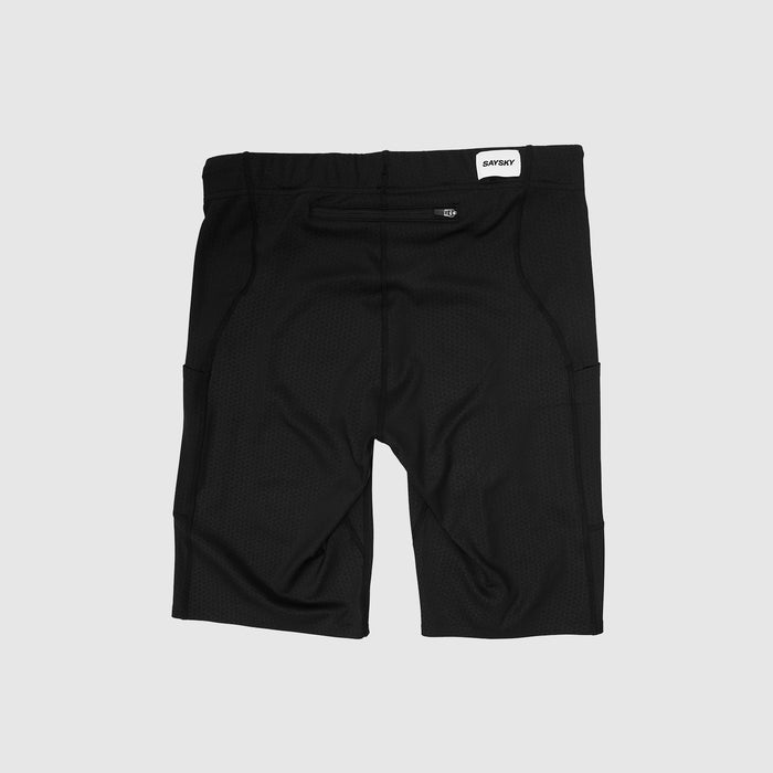Las medias cortas SAYSKY Combat+ de 9" son un par de medias cortas para correr para hombre hechas de poliéster reciclado. Vienen en color negro con un logotipo de SAYSKY tejido en el lateral y en la cintura. Las medias cortas también cuentan con bolsillos laterales y un bolsillo trasero. El ajuste es delgado con una cintura normal. Este modelo en particular es muy bueno para las temporadas de transición como alternativa a las medias largas.