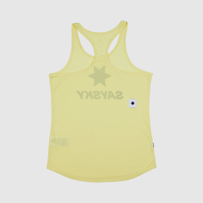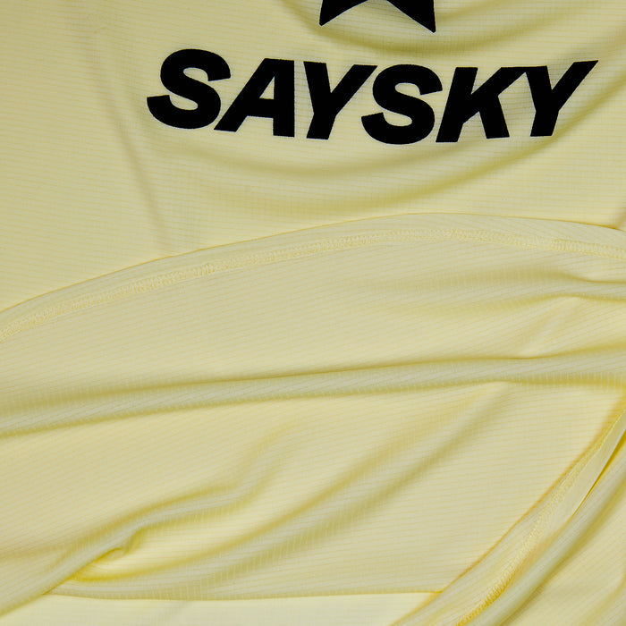 El singlete de flujo de logotipo de SAYSKY es para la persona que solo pide lo mejor de lo mejor. Tiene un ajuste de carrera con espalda de corredor y viene en un diseño amarillo simple con un logotipo de SAYSKY negro en la parte delantera y una etiqueta SAYSKY tejida blanca en la parte posterior. Está hecho de poliéster reciclado al 79 %, un material ligero de alto rendimiento que proporciona una sensación cercana a la piel, ventilación y tiempos de secado rápido.